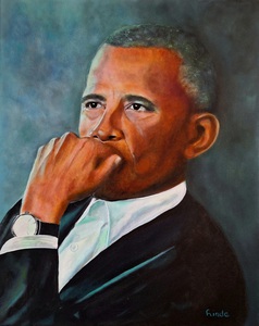 Nelson Mandela geschilderd op canvas met olieverf.